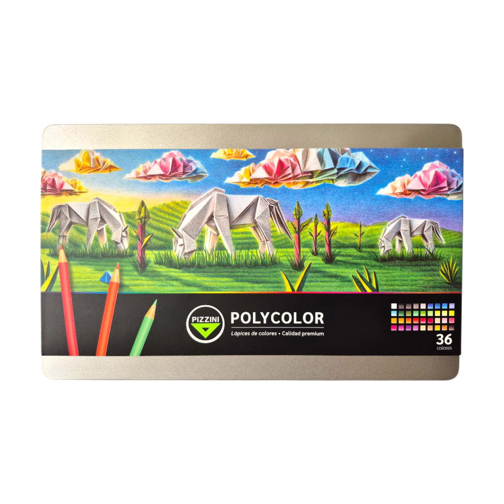 Descubrí los Lápices de Colores Pizzini POLYCOLOR x 36 en Lata, ideales para artistas y estudiantes. Cada lápiz cuenta con minas resistentes a roturas gracias a un proceso de fabricación especial, garantizando durabilidad y precisión. Los colores son vibrantes y de alta pigmentación, perfectos para lograr dibujos con gran intensidad y variedad. Presentados en una práctica lata, son fáciles de transportar y almacenar.