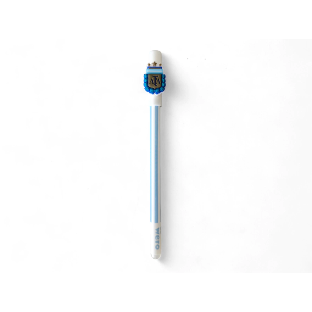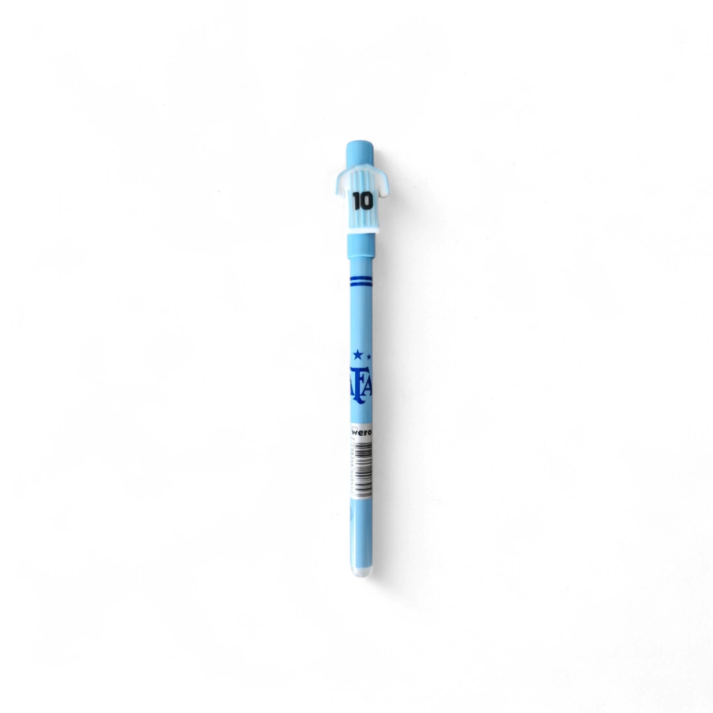Roller gel azul con detalle de Argentina y goma en una punta del boligrafo que borra lo escrito
