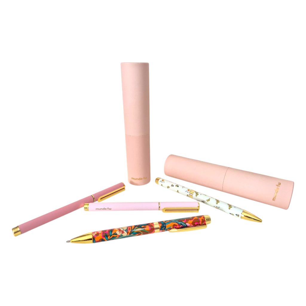 Las Lapiceras FW con Estuche son la opción ideal para quienes buscan funcionalidad y estilo. Cuentan con un cartucho intercambiable que permite seguir usándolas una vez que se termina la tinta, lo que las convierte en una opción sustentable y económica. Vienen con tinta azul y se presentan en un hermoso estuche rosa pastel, perfecto para regalar en cualquier ocasión. Disfrutá de una escritura suave y elegante con estas lapiceras diseñadas para acompañarte siempre.