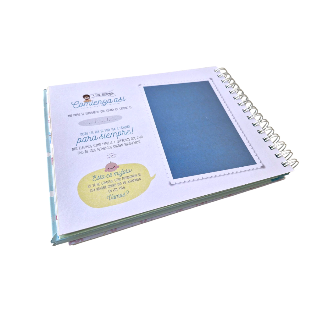 Este hermoso libro cuenta con stickes hojas con dibujos y frases para ir guardando cada momento del bebe.