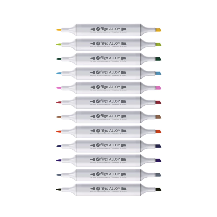 Descubrí los Marcadores Filgo Alloy x 24 Doble Punta, el set ideal para quienes buscan versatilidad y calidad en un solo producto. Este set contiene 12 colores clásicos, 2 tonos piel, 2 botánicos, 2 cálidos, 2 fríos, 2 pastel y 2 secundarios, cubriendo todas tus necesidades artísticas y de diseño. Cada marcador cuenta con doble punta para trazos finos y gruesos, ofreciendo precisión y fluidez en cada línea. Perfectos para ilustración, escritura y proyectos creativos.
